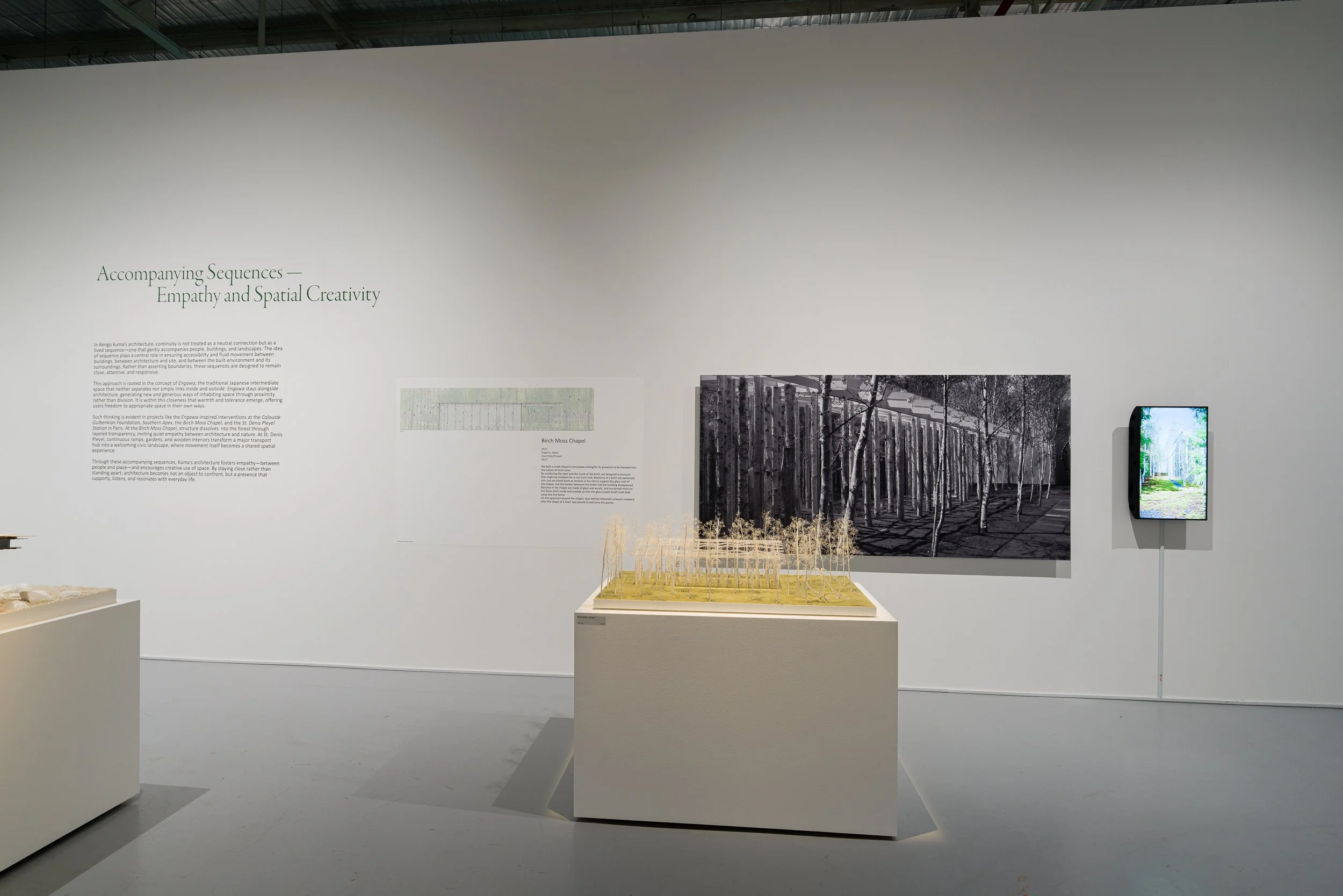 Kengo Kuma’s concept of “MAKERU Architecture” is not simply an architecture of humility or retreat. In this exhibition, yielding is not a gesture of weakness, but a rigorous ontological stance: a method that amplifies existing forces — humidity, climate, noise, cultural memory, material irregularity — rather than erasing or dominating them. Yielding becomes a world-making strategy.
